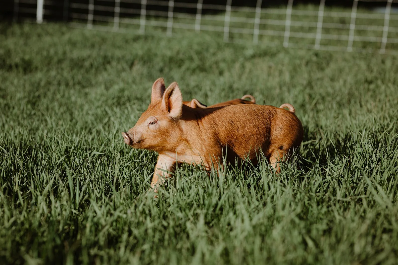 We rotate our pigs across our farm using solar-powered electric fences. This management practice optimizes pasture growth and palatability while ensuring that our grasses constantly pull carbon from the atmosphere and sequester it in their roots. It also deposits manure directly where it can be immediately converted into soil food.